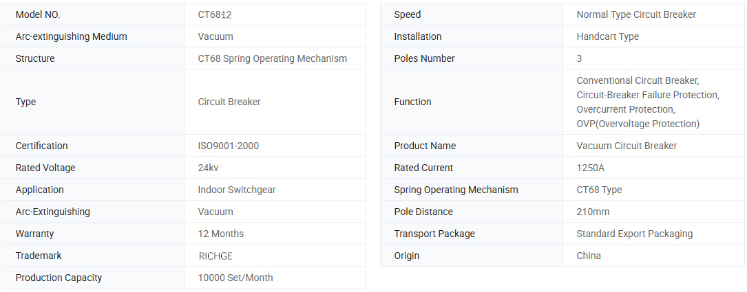 CT68-12 Vacuum circuit breaker ၏အင်္ဂါရပ်များ