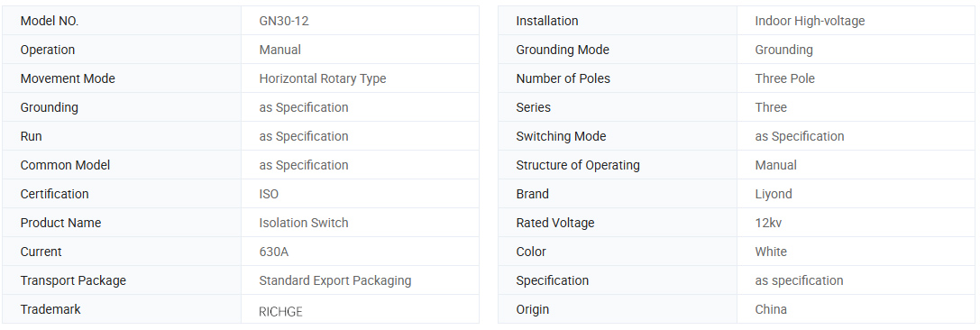 Gn30-12 မိုးလုံလေလုံအသွင်အပြင်မြင့် High Voltage Detonnector သည် Rotary ဓားဖြင့်အမျိုးအစားအသစ်တစ်ခုဖြစ်သည်။ အဓိကဖွဲ့စည်းတည်ဆောက်ပုံဖော်မြူလာမှာသုံးပါးစသည့်အနိမ့်အနိမ့်သည့်အနိမ့်သောလေယာဉ်များနှင့်အနိမ့်လေယာဉ်များအပေါ်လျှပ်ကူးပစ္စည်းကိရိယာများနှင့်အနိမ့်လေယာဉ်များကိုဖြေရှင်းရန်ဖြစ်သည်။ GN3-12D Switch သည်မတူညီသောစွမ်းအင်စနစ်များ၏လိုအပ်ချက်များကိုဖြည့်ဆည်းရန် GN30-12 ၏အခြေခံတွင်ဓားဖြင့်ချိတ်ဆက်ထားသည်။ ဤထုတ်ကုန်သည်ဒီဇိုင်းတွင်ကျစ်လစ်သိပ်သည်းသော, ၎င်းသည် "AC High Voltase Isolding switching switching switching switching switch" ၏လိုအပ်ချက်များနှင့်ကိုက်ညီပြီး Rated voltage နှင့်သက်ဆိုင်သော intoor system များနှင့်သက်ဆိုင်သည်။ ၎င်းကိုဗို့အားနှင့်အဘယ်သူမျှမ 0 န်ဆောင်မှုပေးသည့်အခါ circuit ဖွင့်လှစ်ခြင်းနှင့်ပိတ်ခြင်းအဖြစ်အသုံးပြုနိုင်သည်။ ၎င်းကိုဗို့အားမြင့်မားသော switchgear ဖြင့်အသုံးပြုနိုင်သည်သို့မဟုတ်တစ် ဦး တည်းအသုံးပြုနိုင်သည်။