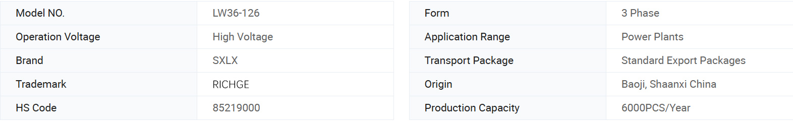Lw36-126 SF6 circuit breaker နည်းပညာဆိုင်ရာ parameters တွေကို
