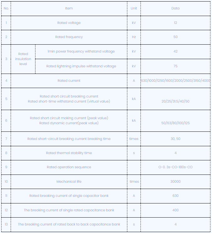 vsg-12 handcart အမျိုးအစား Vacuum circuit breaker နည်းပညာဆိုင်ရာ parameter