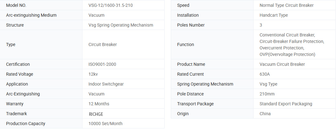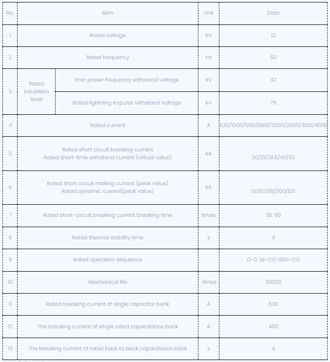 VSG-12 1600A VCB ပုံဖော်သည့်အမျိုးအစားအစိုင်အခဲတိုင်၏နည်းပညာဆိုင်ရာအချက်အချာ